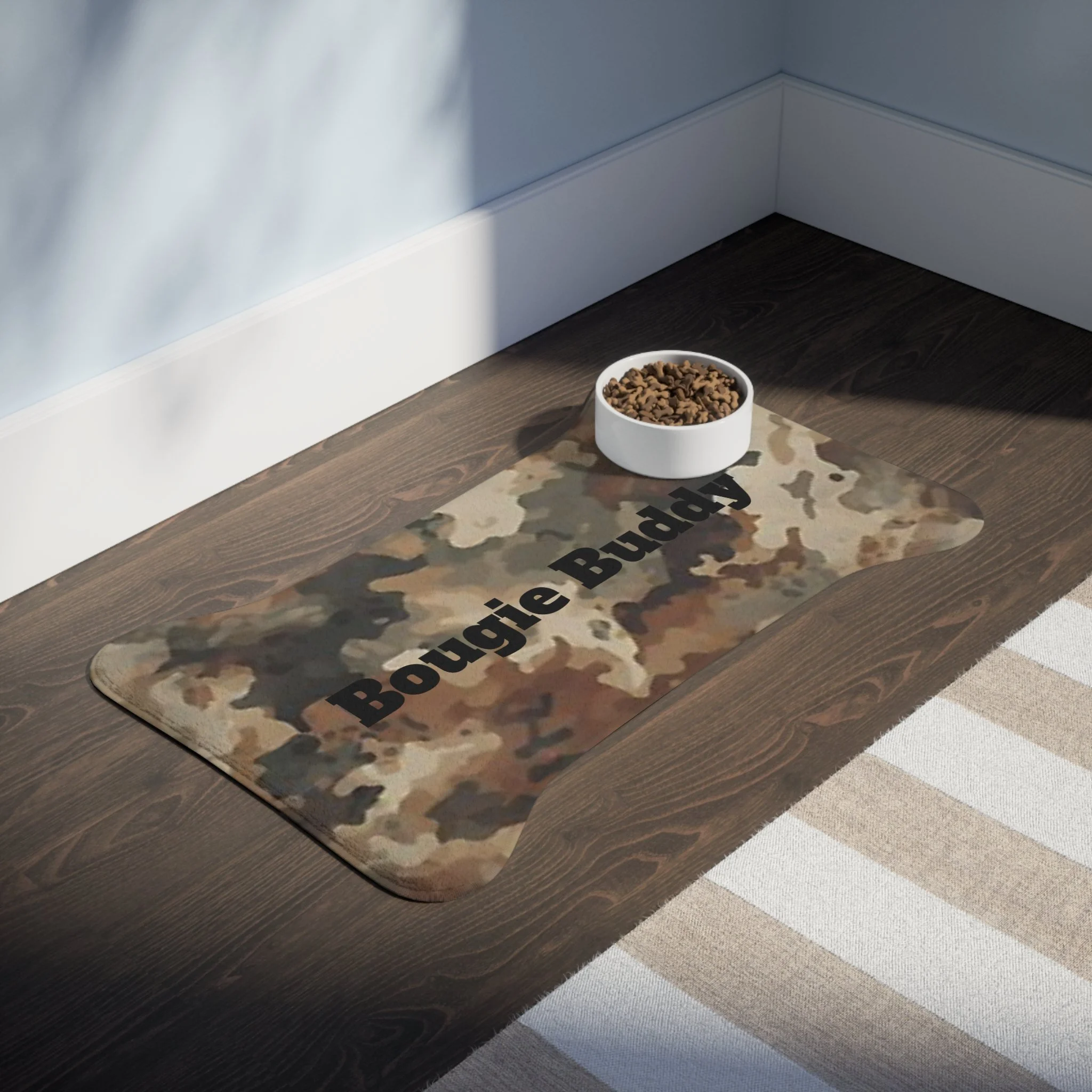 Bone-shaped design (fits 1-2 bowls comfortably)