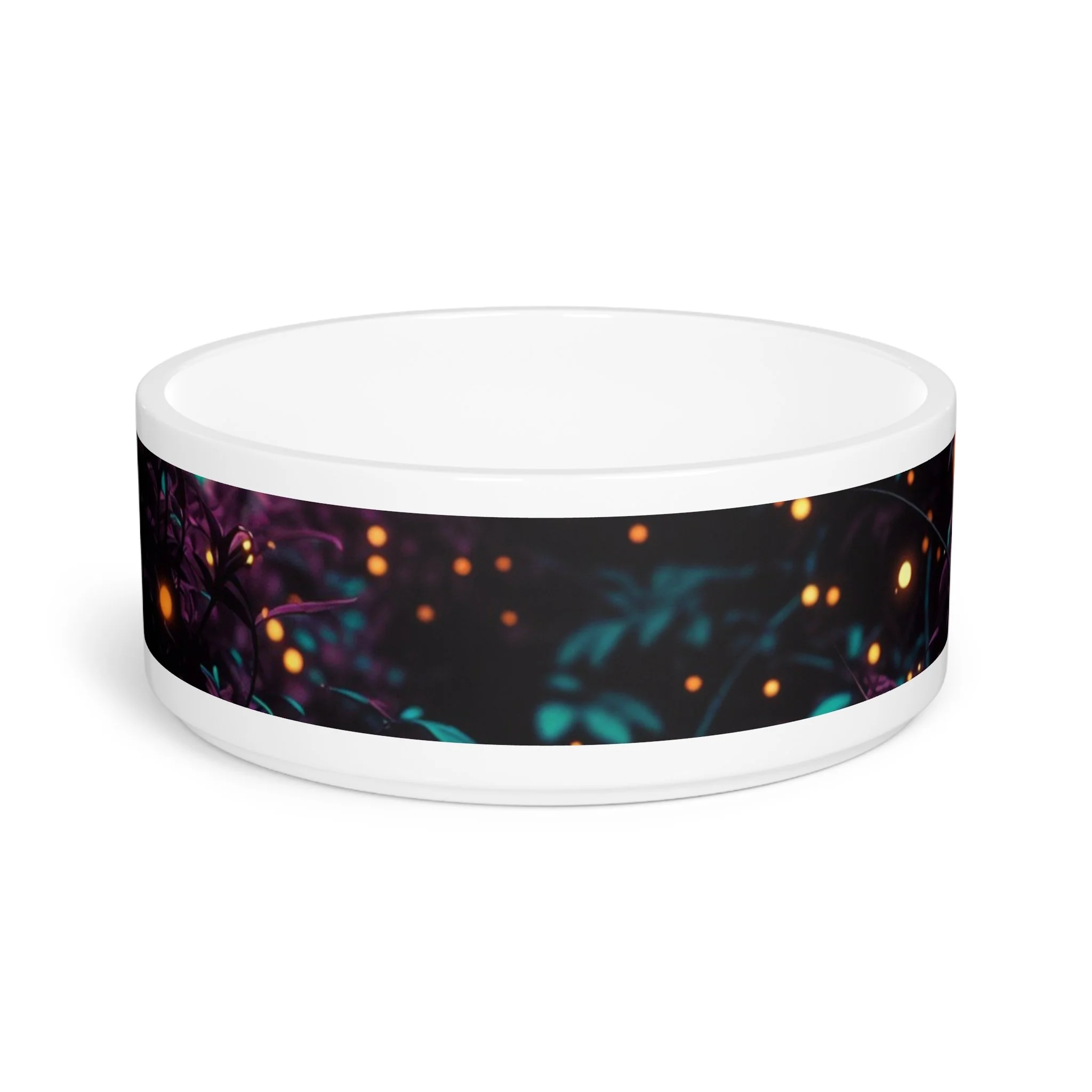 Bougie Buddy Enchanted Forest Pet Bowl - Glowing Firefly Night Forest Ceramic Dog Bowl