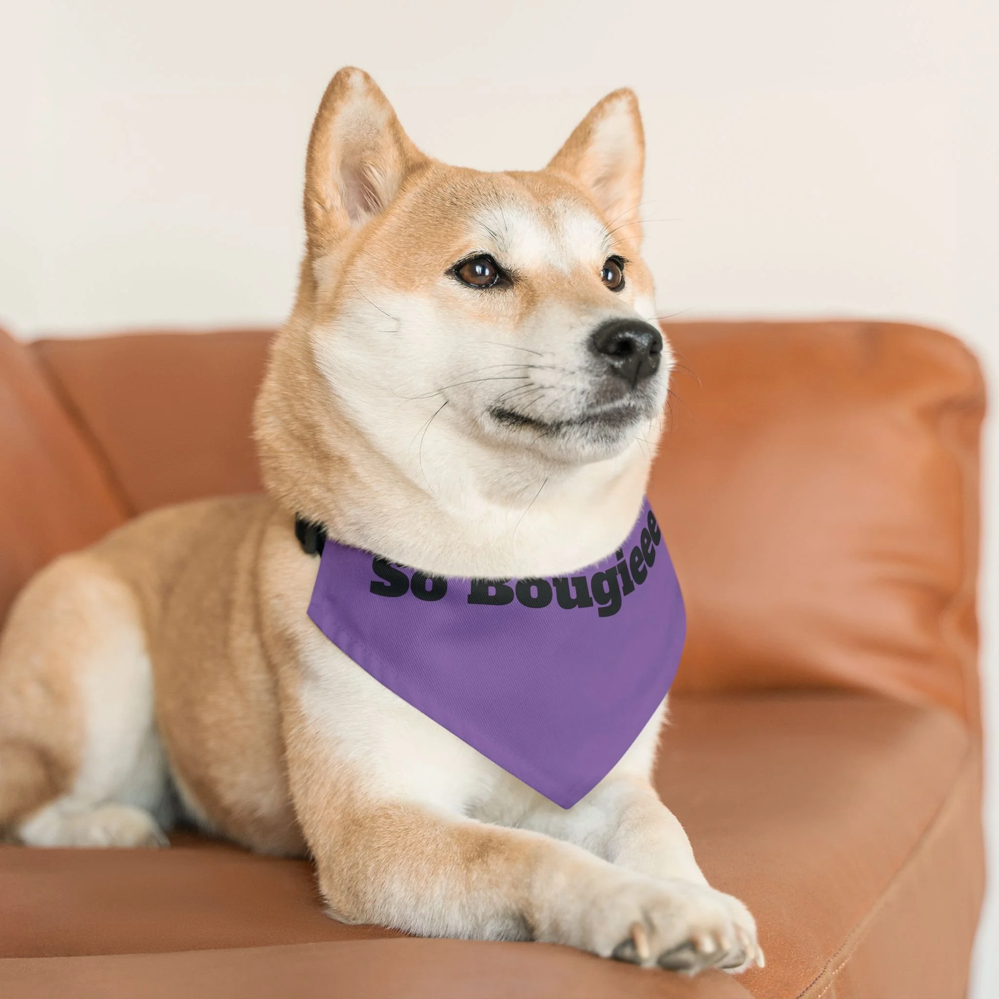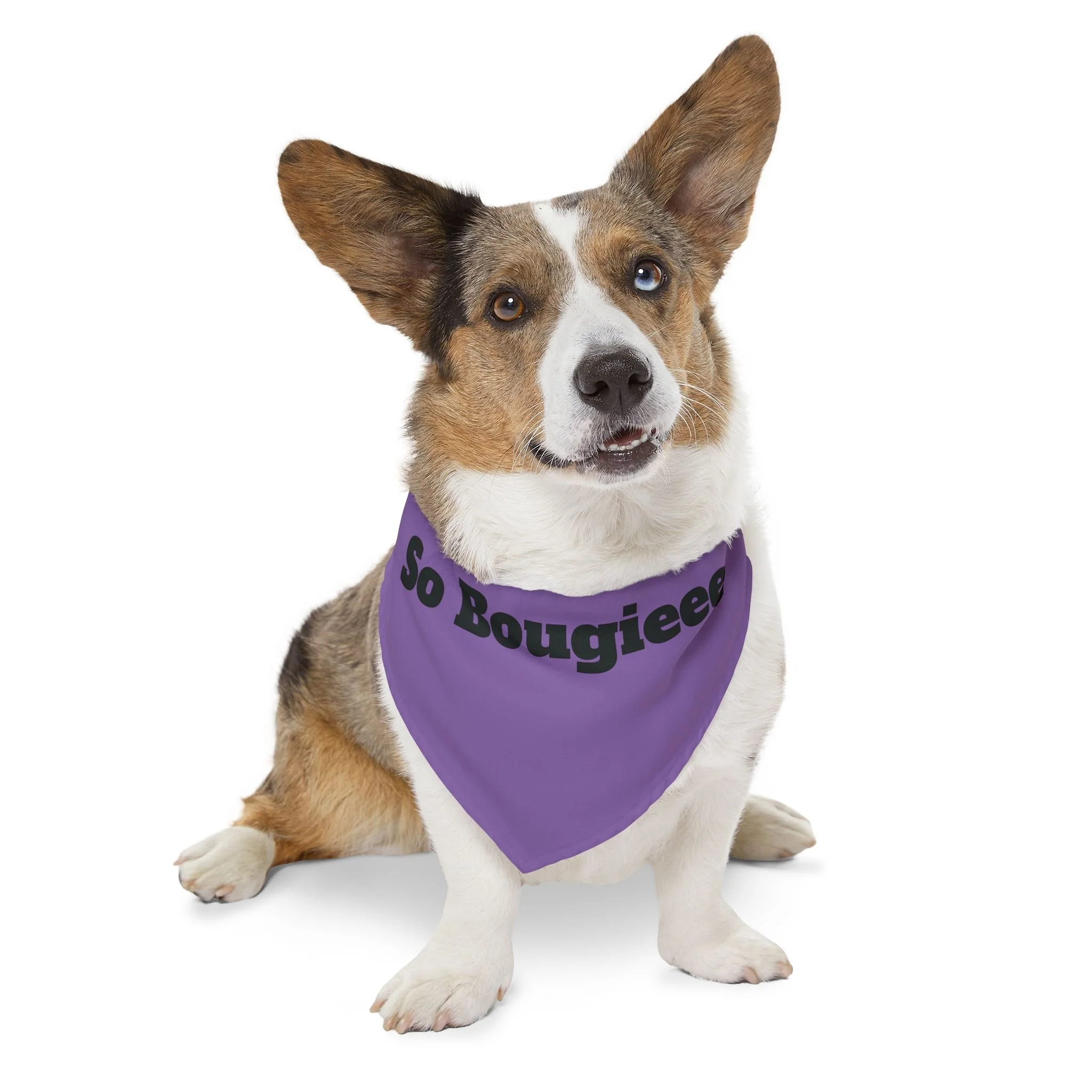 Bright, confident, and a little sassy — this pet bandana collar dresses your dog in personality. The deep green fabric with bold yellow lettering reads “So Bougieee,” sending a playful, upscale vibe whether you’re walking the neighborhood or posing for photos. Lightweight polyester keeps the bandana smooth and quick-drying, while hemmed edges and an adjustable black collar with a plastic buckle give a secure, clean finish. Available in four sizes, it slips into daily life effortlessly and adds a vivid pop of color to any outing or celebration.