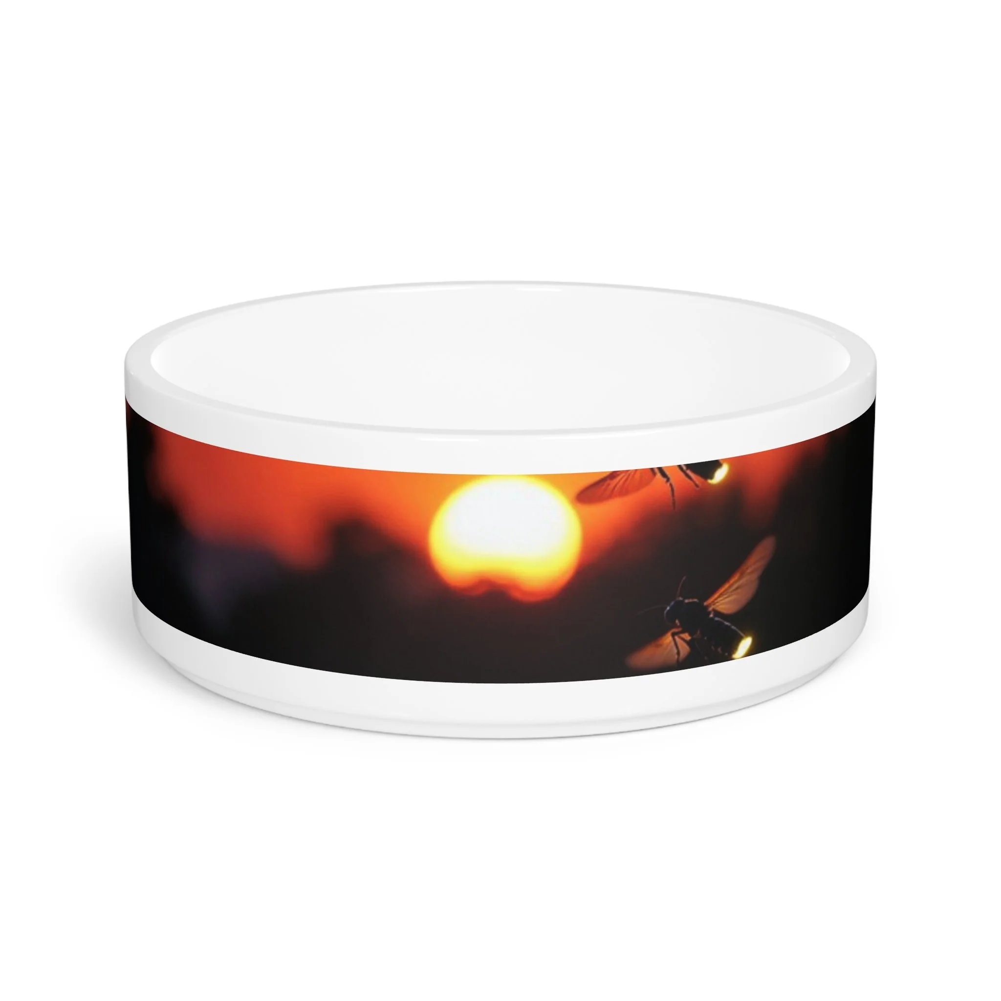 Blue Firefly Glow Pet Bowl - Luminous Blue Fireflies Ceramic Dog Bowl
