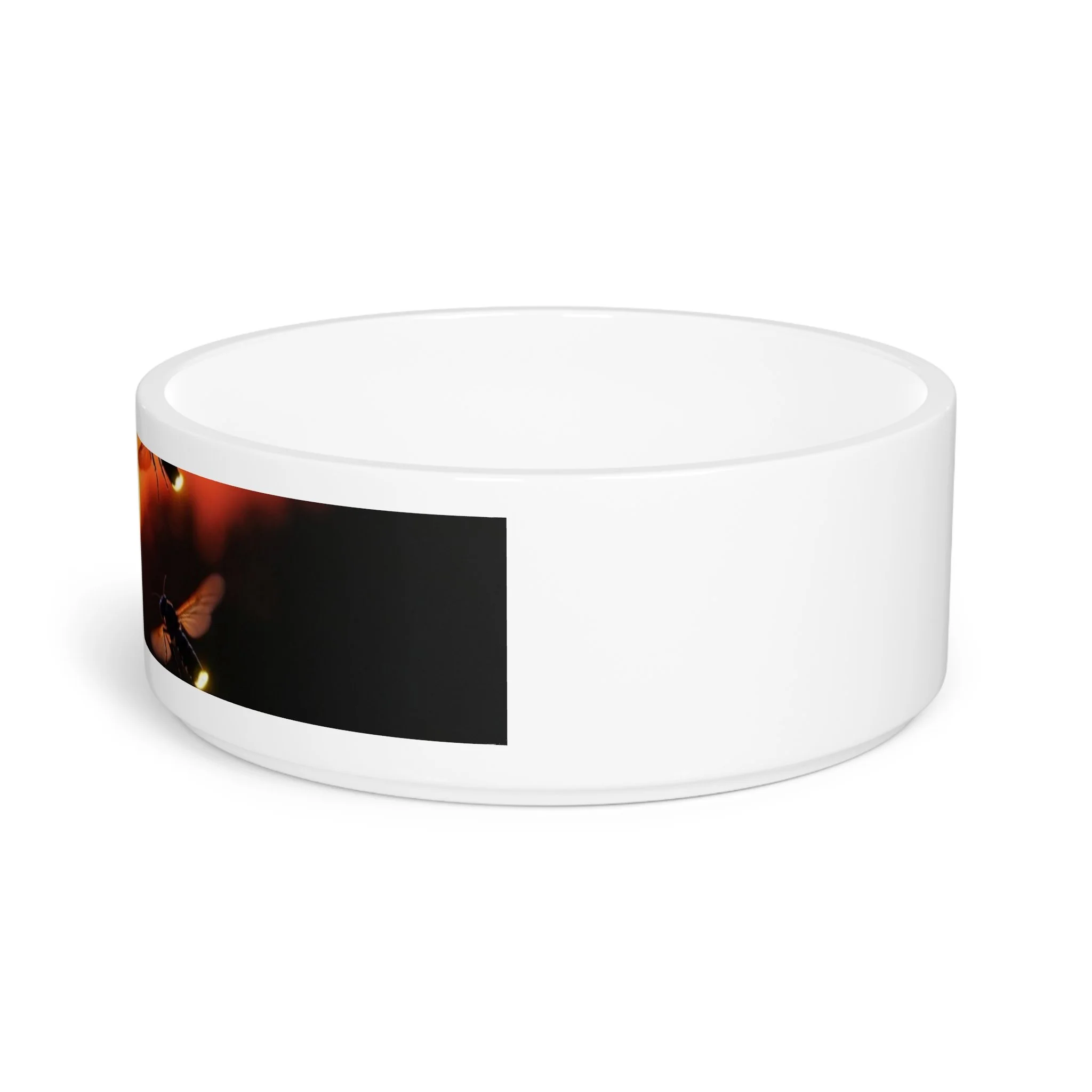 This stunning blue firefly glow pet bowl features luminous teal/blue fireflies floating on a dark, dreamy background—creating a captivating glow effect that makes your pup's feeding spot feel like a magical night adventure. Glossy white ceramic interior for easy cleaning, full-wrap print, and the premium Bougie touch.